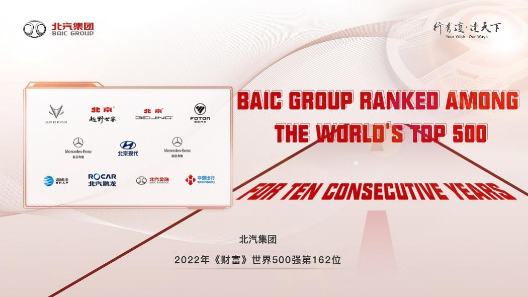 2022 Fortune Global 500 list was released on August 3. BAIC Group has been selected into this world’s top 500 list for 10 consecutive years and ranked 162th with revenue of 481.76 billion yuan.