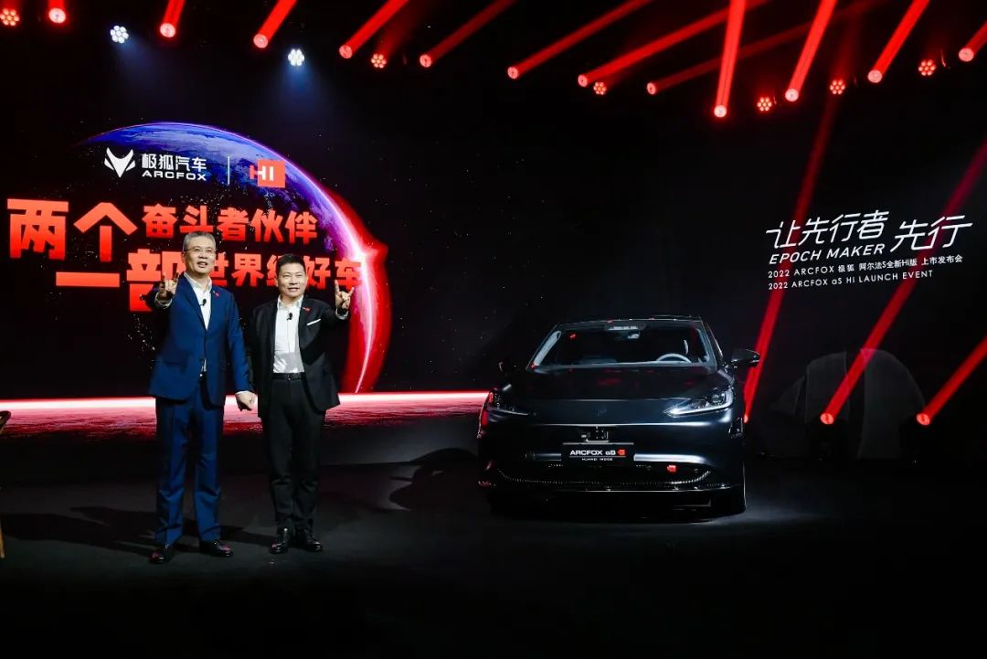 就在剛剛,ARCFOX極狐阿爾法S全新HI版車型正式上市,北汽集團副總經理、北汽新能源董事長劉宇,華為常務董事、終端BG CEO、智能汽車解決方案BU CEO余承東同臺握手,共同見證這款“智能駕駛第一車”的隆重登場。