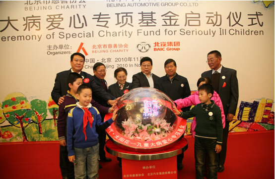 在為客戶提供優質服務的同時,北汽集團也不忘關愛社會弱勢群體,真情回饋社會,在扶危濟貧、環境保護、社會服務、企業責任、興學助教等領域持續開展公益慈善活動。由集團出資設立了北汽兒童大病專項愛心基金,并支持奔馳銷售公司的星愿基金會、北京現代的車教助學、北汽福田支持航天等一系列品牌慈善活動,贏得社會各界的高度贊譽。2013年8月1日在北京汽車產業研發基地舉辦接收少數民族暑期實習大學生座談交流會,體現了集團心系少數民族大學生的實踐學習;今年8月云南魯甸地震,北汽集團也第一時間捐贈20輛BJ40高性能越野車,投入抗震救災指揮第一線,再次彰顯了企業的社會責任。